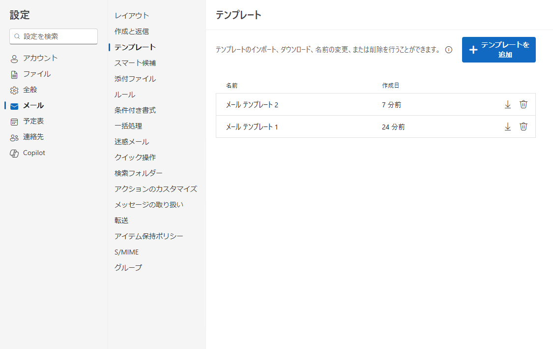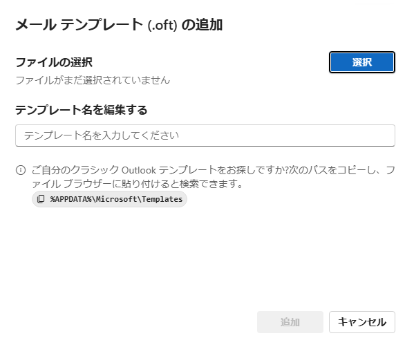 これにより、従来の Outlook for Windows (以下、従来の Outlook) で利用していたテンプレートの内容をもとに新しい Outlook のテンプレートを追加できます。