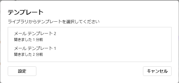 保存されたテンプレートは [設定] - [メール] - [テンプレート] より確認できます。